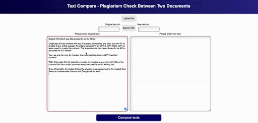 Tools for conducting a plagiarism check between two documents online are important as it helps to ensure the originality and authenticity of written work. Plagiarism undermines the value of professional and educational institutions, as well as the integrity of the authors who write articles. By checking for plagiarism, you can ensure the work that you produce is original or properly attributed to the original author. This helps prevent the distribution of copied and misrepresented information.