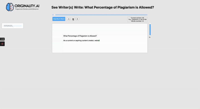 “Can’t people just type the output from ChatGPT into a Google Document to trick this?” Yes, this could be tricked. However, if we raise the amount of effort required to cheat you then writers who want to pass off AI work as their own will find easier places then anyone using Originality.AI. Plus, we have some updates in the works that will help identify this unnatural typing pattern.