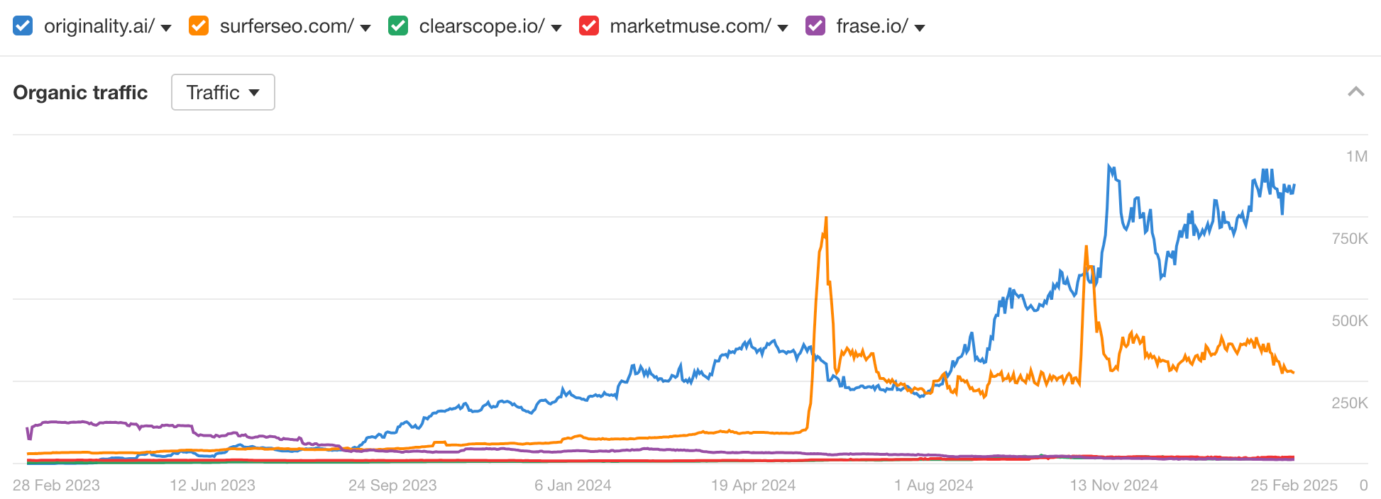 Here are the top Content Optimization tools and the search traffic they get to their website.