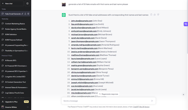 For this example, we have generated some fake emails and names within ChatGPT, to give you an idea of how the tool works.