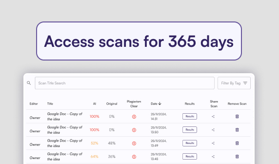 Access to our Chrome Extension which allows you to run scans directly in Google Docs and watch a replay of the writing process.